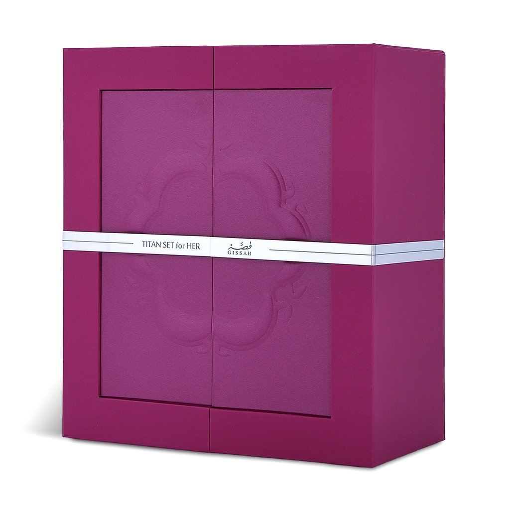 Le coffret Titan for Her est un hommage à la femme moderne, un équilibre parfait entre force et douceur, confiance et bienveillance. Il célèbre les multiples facettes de la féminité à travers deux expressions olfactives distinctes mais complémentaires : Titania et Seraphina.
